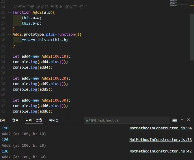 - Add의 prototype객체에 생성된 함수는 인스턴스 객체가 공통으로 사용할 수 있음