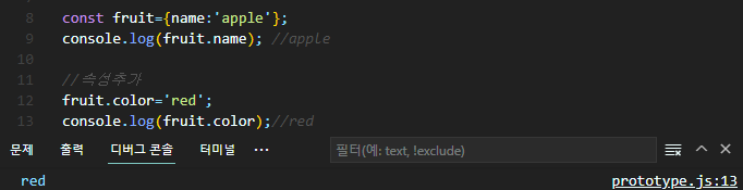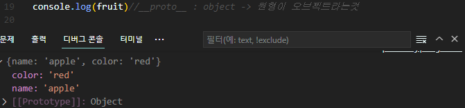 - 이 속성은 fruit를 Object, 즉 객체라고 말하고 있다.