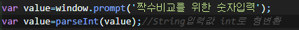 prompt는 string으로 입력받으므로 parseInt를 사용해 int형으로 형변환해준다.