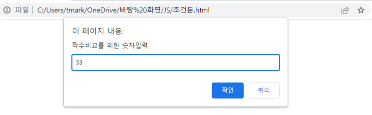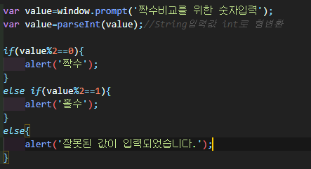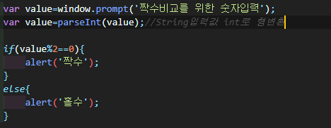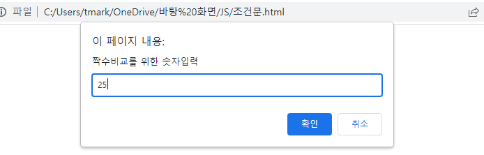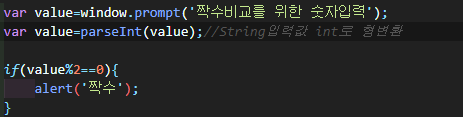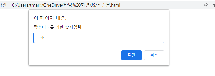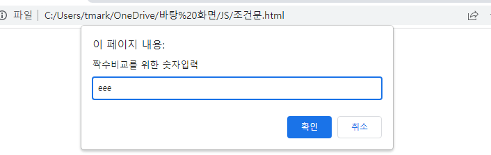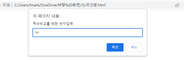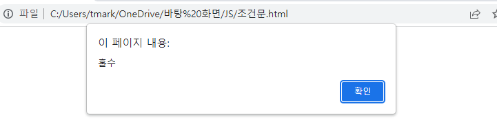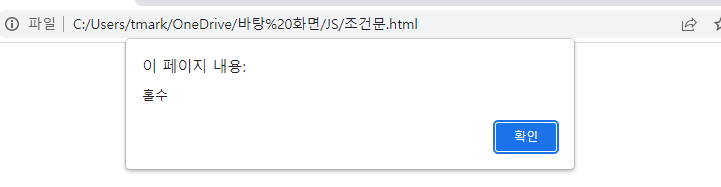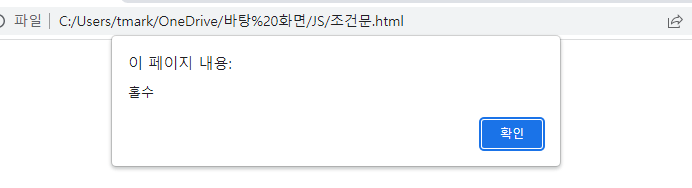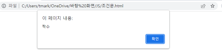 안의 내용인 알림창으로 짝수라는 문자를 띄워준다.