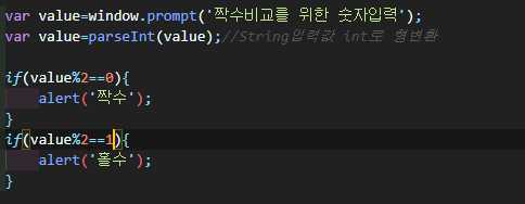 value변수를 2로 %나눴을때 ==0으로 딱 떨어진다면,