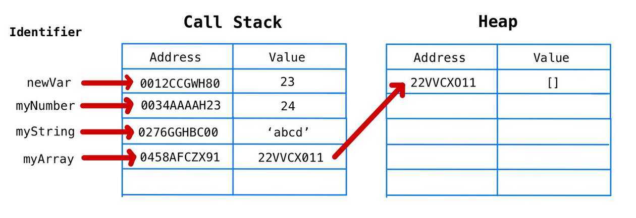 메모리 힙에는 Call by reference형식의 데이터만이 저장된다.