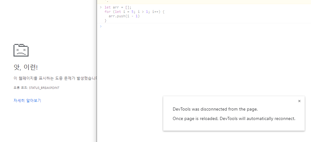 크롬 개발자 콘솔에 실험해보지 않길 바란다. 페이지가 다운된다.
