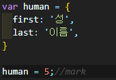 지금 human객체는 first와 last라는 속성의 데이터를 참조하고 있다.
