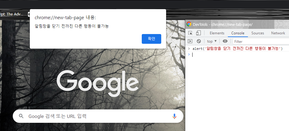 한번 개발자 콘솔에 alert를 띄워보자