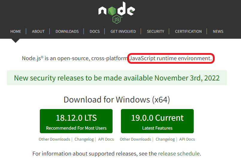 실제로 node.js 설치 페이지에 가보면 확실하게 적어뒀다.