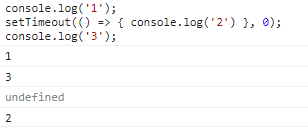 2가 출력되는 이유는 setTimeout은 비동기로 처리가 되기 때문이다.