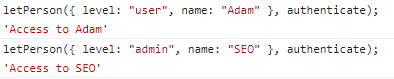 letPerson({ level: "user", name: "Adam" }, authenticate);