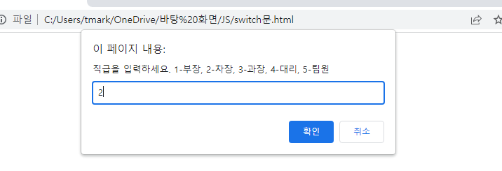 차장일 경우 2를 입력한다면