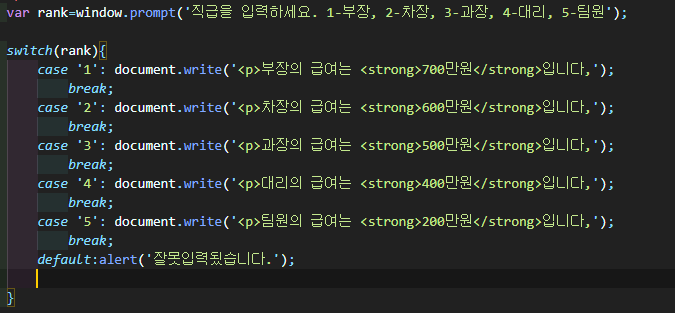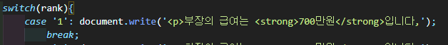 1번 케이스일 경우 case '1' : 이라고 작성하고