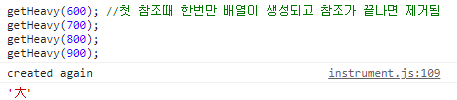 getHeavy(600); //첫 참조때 한번만 배열이 생성되고 참조가 끝나면 제거됨