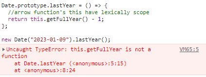 Date는 날짜를 나타내는 타입이며 해당 타입에 lastYear라는 내장 메서드는 존재하지 않는다.