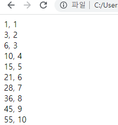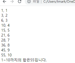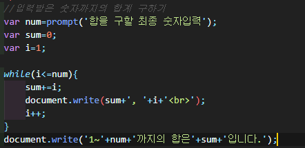i는 1부터 계속 증가하면서 sum변수에 더해지고
