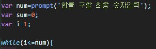 while문을 생성하고 괄호 안의 조건식에 i가 num보다 작거나 같을때까지 반복하도록 작성한다.