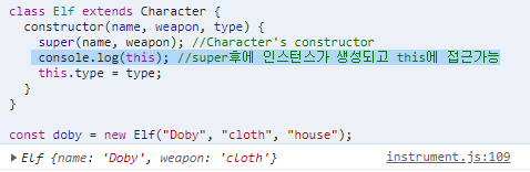 super가 동작한 후에야 this는 클래스 Elf를 가리키게 된다.