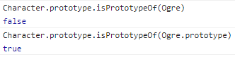 console.log(Character.prototype.isPrototypeOf(Ogre.prototype)); //false