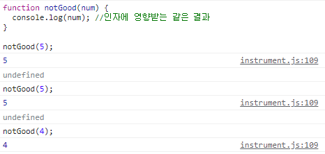 console.log(num); //인자에 영향받는 같은 결과