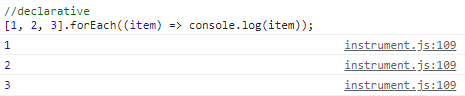반면 선언형 프로그래밍에서는 1부터 3까지의 숫자를 출력하기를