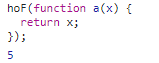 위 코드에서 hof는 인자로 받은 함수에 5라는 인자를 전달하여 리턴한다.