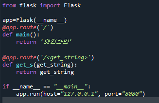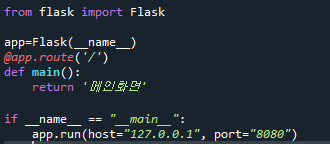메인서버에서 main함수는 '메인화면'이라는 문자를 리턴하도록 한다.