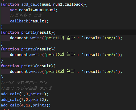 콜백함수는 코드의 수정과 유지보수등에 유리한 방식이다.