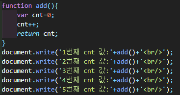 counter변수에는 add함수의 리턴값인 cnt가 리턴되게 된다.