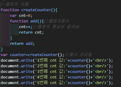 cnt변수 값의 증가를 저장해서 사용하기 위해서 클로저함수를 사용한다.