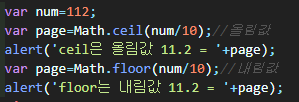 min, max, ceil, floor는 코어 라이브러리 Math의 하위함수이므로 사용시 Math.을 붙여준다.
