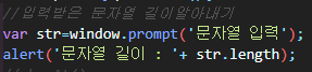 문자열을 입력받고 해당 변수에 .length를 붙이면 문자열의 길이가 리턴된다.