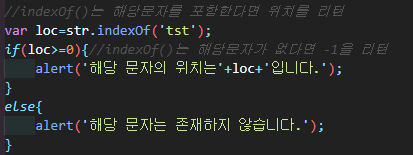 str문자열 변수에 indexOf와 매개변수로 찾고싶은 문자를 넣으면 loc변수에 인덱스값, 즉 위치값이 저장된다.