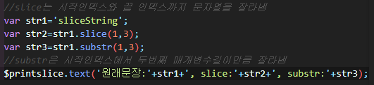 slice는 시작인덱스<=(잘라낼문자열)<끝인덱스 의 범위로 잘라낸다.