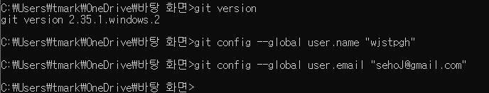 git config --global user.email "깃허브 가입할 때 사용한 이메일"
