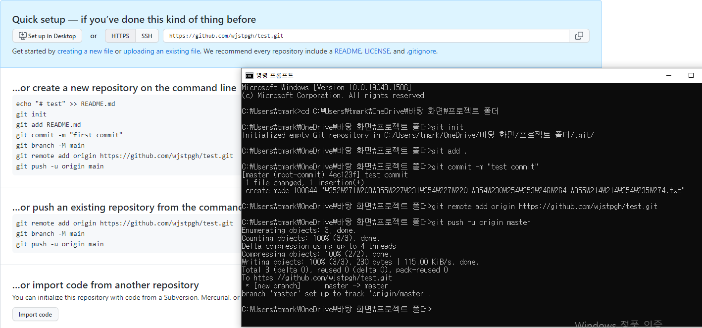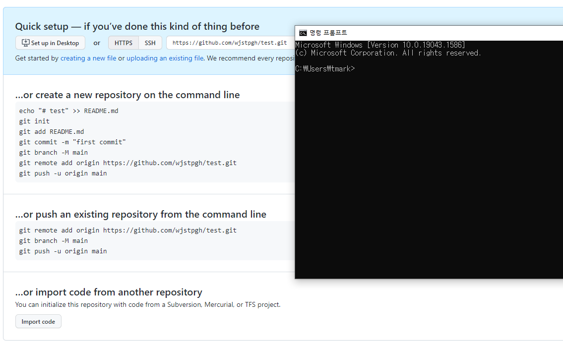 윈도우키+r 을 눌러서 cmd를 실행시킬 수 있다. git bash를 사용해도 된다.