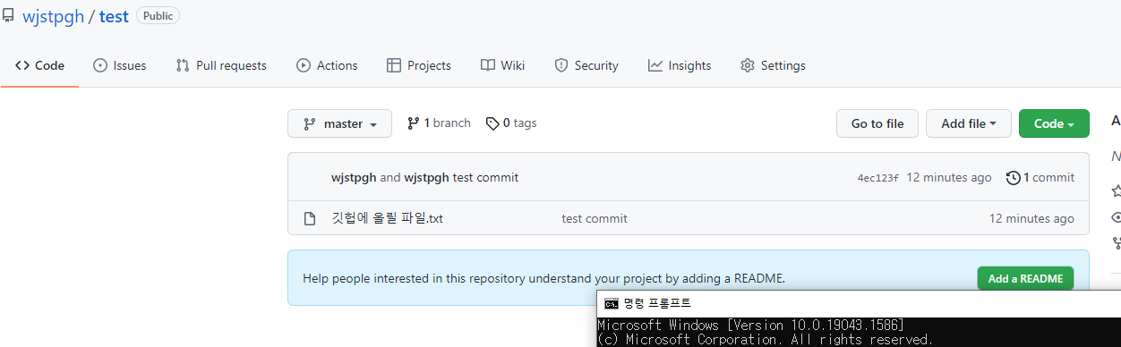해당 레파지토리에 파일이 업로드 된 것을 확인할 수 있다.