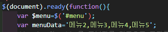 메뉴태그를 지정하고 menuData라는 문자열을 생성해준다.