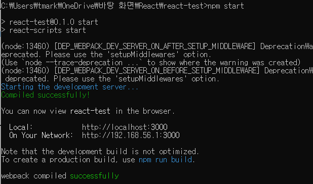 해당 폴더에 들어가서 npm start로 실행시켜본다.
