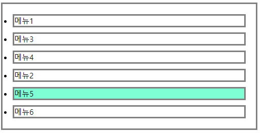 이번에도 메뉴2를 클릭하니 메뉴5의 뒤로 이동했다.