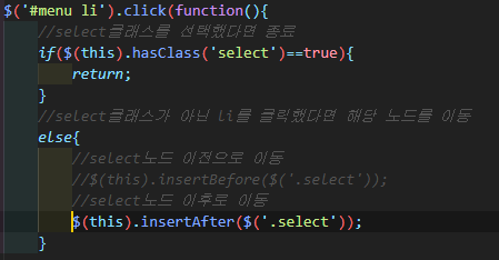 클릭된 li태그가 select클래스를 가졌다면 이벤트를 종료한다.
