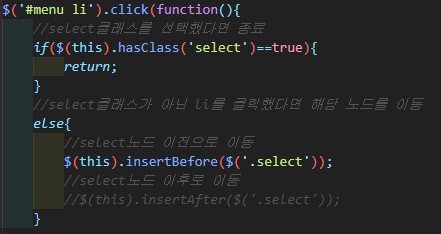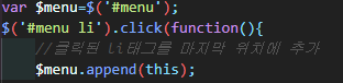 클릭된 li태그(this)를 menu아이디를 가진 태그의 제일 마지막 위치에 추가한다.