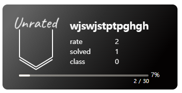 알고리즘 사이트 백준의 랭크를 표시할 수 있는 카드이다. 우선 백준아이디를 solved.ac연동을 시켜준다.