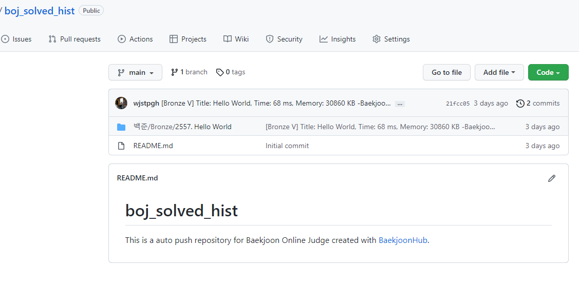 문제가 풀릴때마다 저장소에 업로드 되는 것을 확인 할 수 있다.