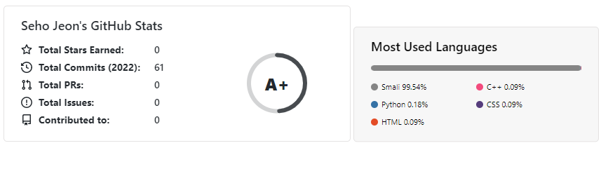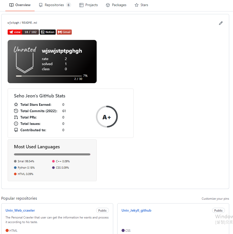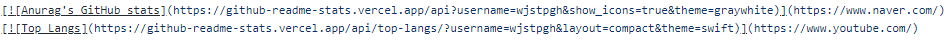 깃 스탯창은 아래 레파지토리에서 긁어올 수 있고 꾸미는 방법들을 리드미를 통해 알 수 있다.