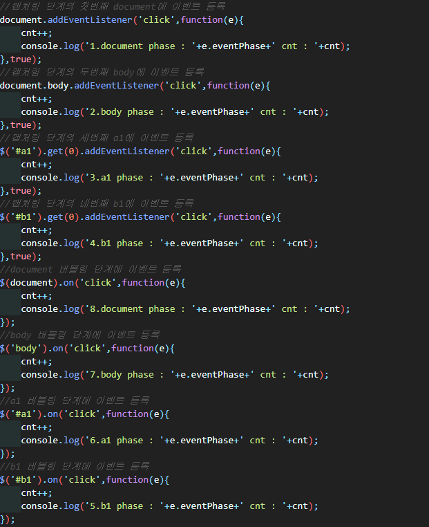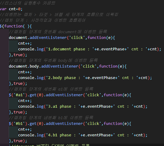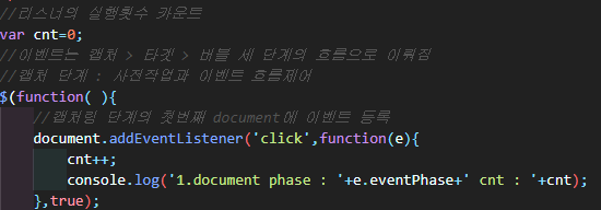 제일 상위인 문서 노드에 클릭이벤트가 지나가면 cnt변수가 증가하고