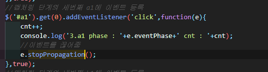 여기서 a1을 클릭했을 때 document와 body에서 일어난 것이 찾아가는 캡처단계이고 1로 표시된다.