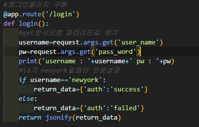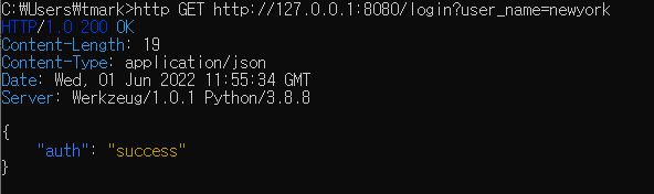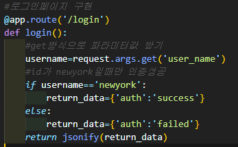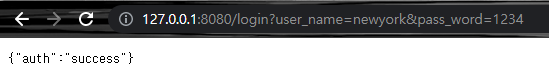 username변수에 newyork값이 전달되며 인증이 성공됬다는 json데이터가 반환된다.
