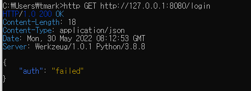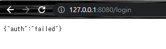 서버를 구동시키고 해당 페이지로 들어가니 인증 실패의 반환값이 나온다.