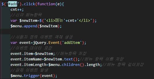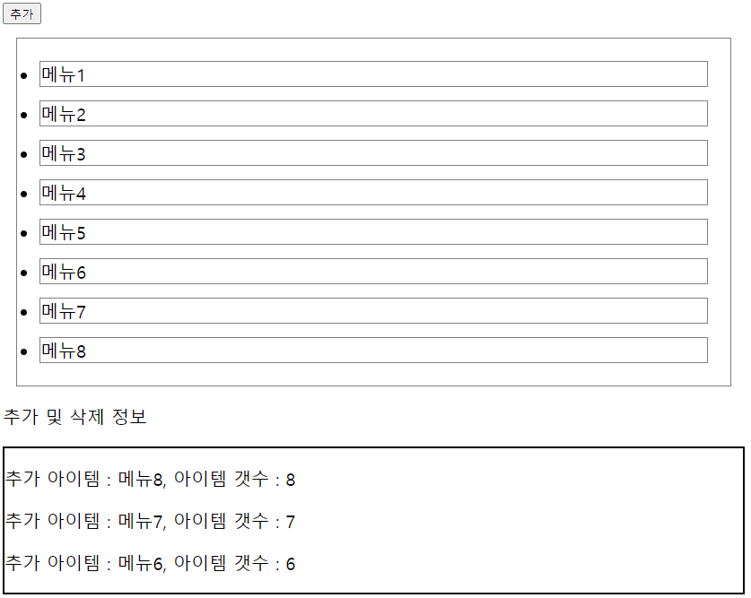 추가 버튼을 누르면 li태그가 추가되면서 트리거를 통해 사용자가 정의한 addItem이벤트 또한 함께 실행된다.