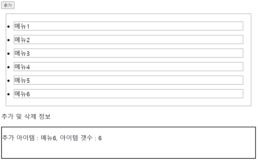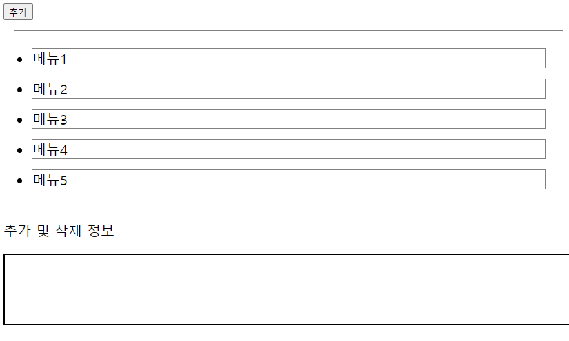 추가 버튼을 누르면 li태그가 추가되며 해당 내용이 output div태그에 기록되도록 해본다.