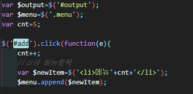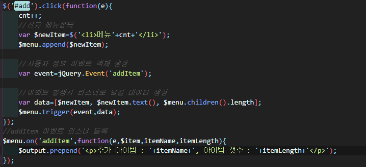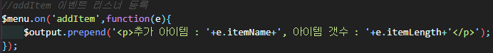 트리거로 전달된 addItem이벤트는 ul태그에 prepend로 event내용을 출력한다.