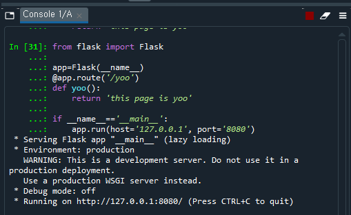 실제로는 서버 프로그램을 따로 사용하지만 테스트등을 위해 flask에서 자체 제공하는 서버구동기능을 사용했다.